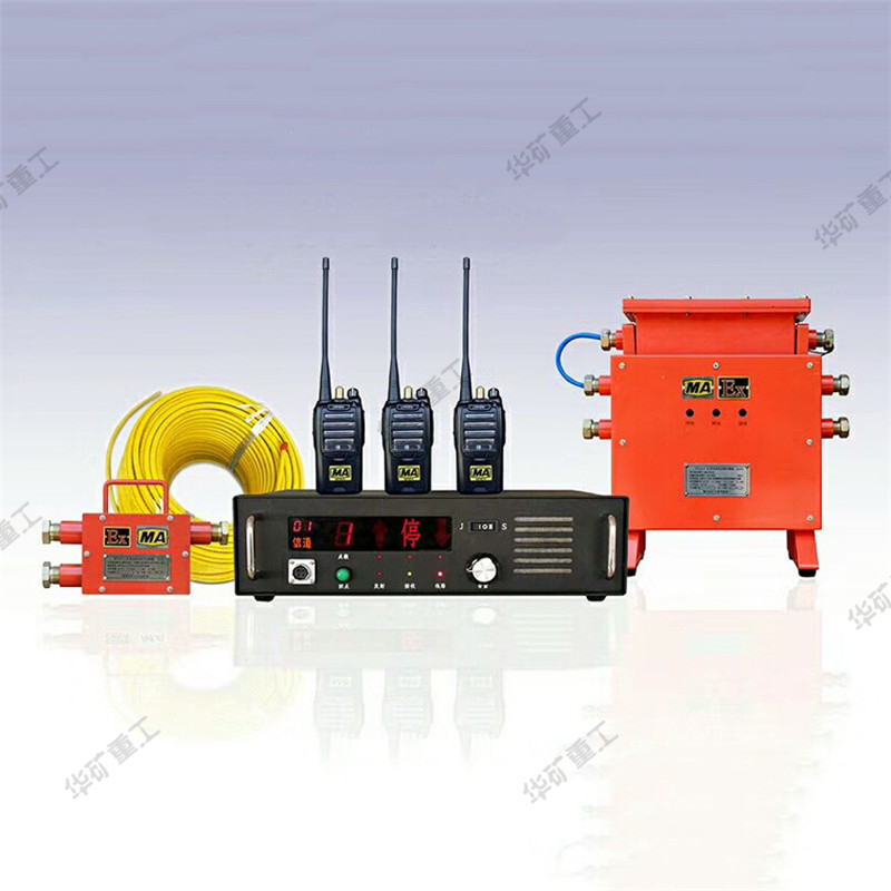 本系統(tǒng)實(shí)現(xiàn)井上機(jī)房人員和斜井機(jī)車(chē)或豎井吊罐中維修人員相互通話(huà)的通訊設(shè)備。它可以有效地傳遞語(yǔ)音及打點(diǎn)信號(hào),使井上有關(guān)人員和斜井及豎井內(nèi)人員建立起緊密的聯(lián)系。系統(tǒng)由設(shè)在機(jī)房?jī)?nèi)的基地臺(tái)、穩(wěn)壓電源,鋪設(shè)在井道中泄漏電纜以及人身攜帶的手持機(jī)所組成?;嘏_(tái)收到的語(yǔ)音、打點(diǎn)信號(hào)由機(jī)外的話(huà)筒喇叭發(fā)出,在85dB的噪音環(huán)境中仍能與手持機(jī)進(jìn)行通話(huà)或打點(diǎn)聯(lián)系。(基地臺(tái)具有記憶并顯示打點(diǎn)次數(shù)的功能)。該系統(tǒng)配套的設(shè)備均可以在具有煤塵、爆炸性氣體的礦井中使用。安裝了這套設(shè)備,能夠保障斜井人員及豎井檢修人員安全、可靠地工作?;嘏_(tái)、穩(wěn)壓電源安放在機(jī)房的桌面上,使用127V交流照明電。