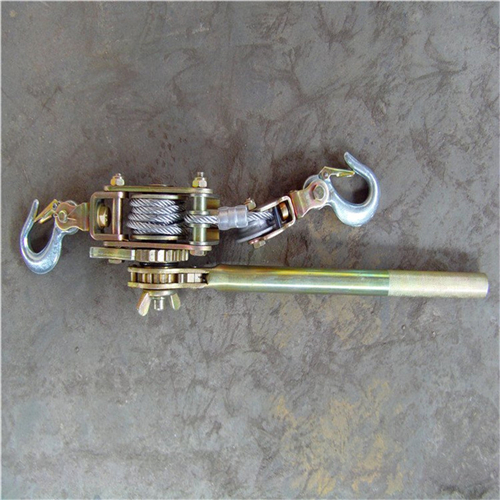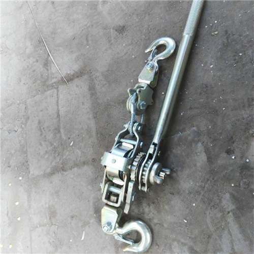 手扳棘輪緊線器的使用方法是;先將手扳棘輪緊線器的卡板扳到松線的位置,將鋼絲繩全部拉出,再把掛鉤掛在固定點(diǎn)上,然后將卡板扳到緊線位置,把手扳棘輪緊線器沿著導(dǎo)線(或者繩索)向前伸,把需要拉緊的導(dǎo)線(或者繩索)卡入手扳棘輪緊線器的卡線口內(nèi),用一只手把卡入手扳棘輪緊線器的卡線口內(nèi)的導(dǎo)線捏緊,一只手搬動(dòng)手扳棘輪緊線器的收線扳手,將導(dǎo)線收緊,待導(dǎo)線(或者繩索)牢牢的被卡緊后就可以慢慢收緊導(dǎo)線或者繩索了。